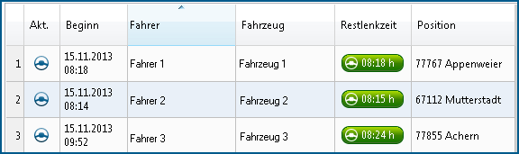 In der Datentabelle finden Sie aktuelle Informationen zu den Lenk- und Ruhezeiten Ihrer Fahrer.