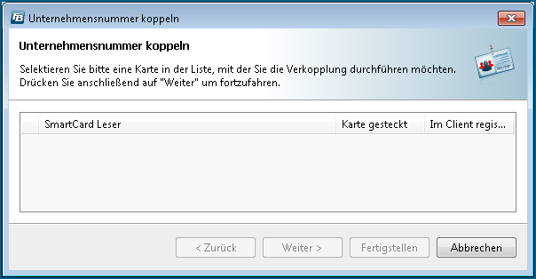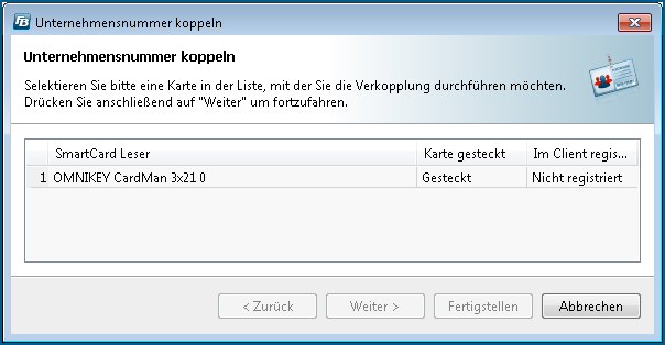 Nach Auswahl der Option lokaler SmartCard-Leser, lesen Sie unter dem Abschnitt Unternehmensnummer (für lokalen SmartCard-Leser) weiter.