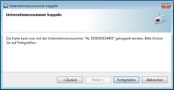6. Klicken Sie auf Fertigstellen.Nach erfolgreicher Kopplung erscheint die Unternehmensnummer in der Liste.