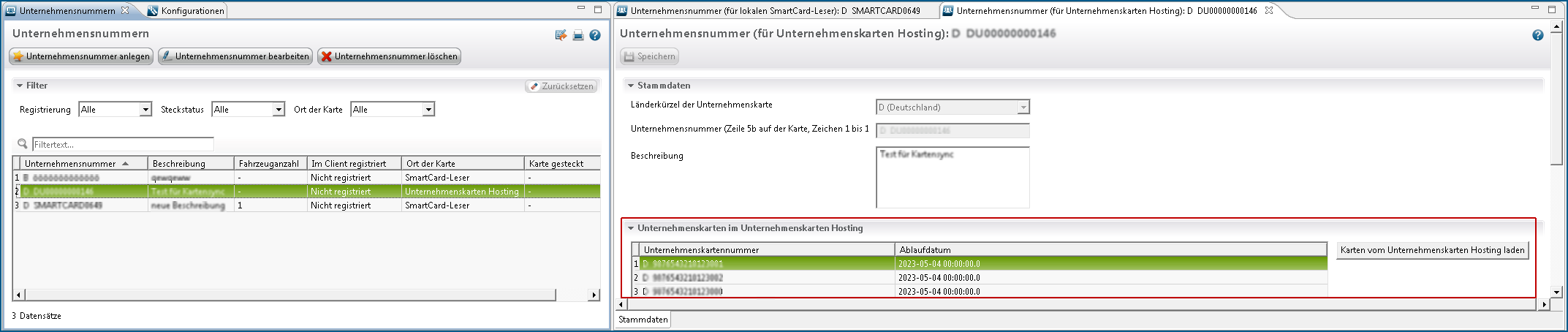 In der Liste erscheint die gestecke Unternehmenskarte.