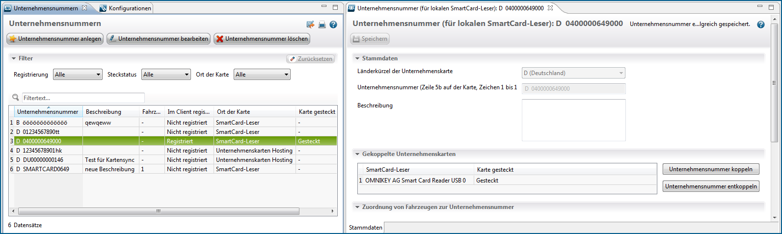 Um einer Unternehmensnummer ein oder mehrere Fahrzeuge zuzuordnen, gehen Sie wie folgt vor: