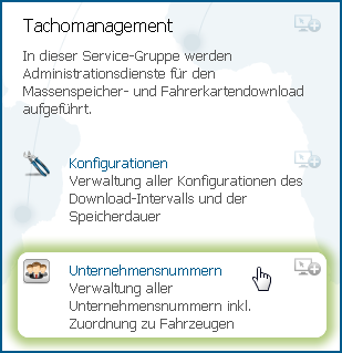 2. Klicken Sie im Administrationsbereich Tachomanagement auf die Schaltfläche Unternehmensnummern.Es öffnet sich eine Listenansicht aller Unternehmensnummern.