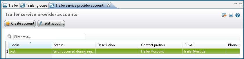 2. Double-click the TSP in question or select the entry and click the Edit account option to get to the Master data of the TSP.