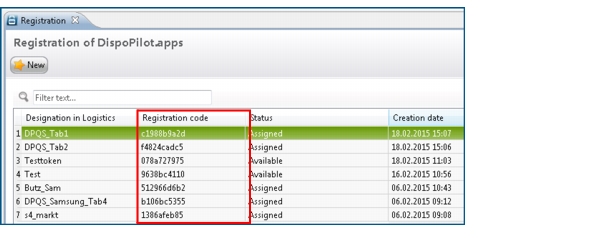 Under Status, the data table shows whether the driver has registered himself for the DispoPilot.app with the code transferred to him. Assigned means that the driver has registered himself successfully with the code. Available means that the registration has not yet been completed and the code has not yet been used.