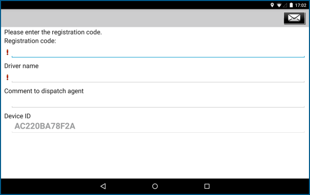 Configuration of the DispoPilot.app by the Driver The following steps have to be taken when the DispoPilot.app is configured by the driver: 1. The driver downloads the DispoPilot.app from the Google PlayStore. If the DispoPilot.app is installed on the mobile end device (tablet, smartphone), the app will set up a connection to the FleetBoard Service Centre. 2. When starting the DispoPilot.app for the first time, the driver has to acknowledge the terms of use once. 3. The driver enters the registration code sent to him by the dispatch agent, as well as his name and a message to the dispatch agent into the registration form of the app. NOTE The device ID is automatically generated. The DispoPilot.app has now been registered by the driver. 4. The driver waits for the connection to the dispatch office. The dispatch agent now has to request a connection from a virtual vehicle to the DispoPilot.app which has just been registered.